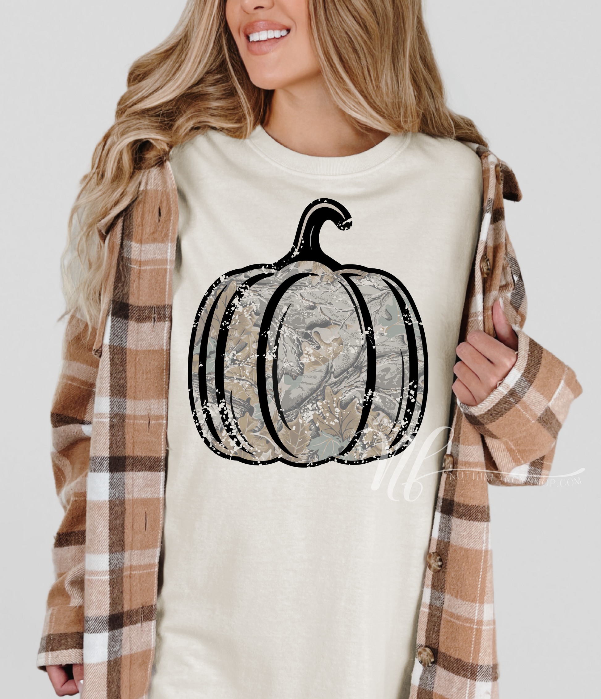 Vintage Camo Distressed Pumpkin on Ivory